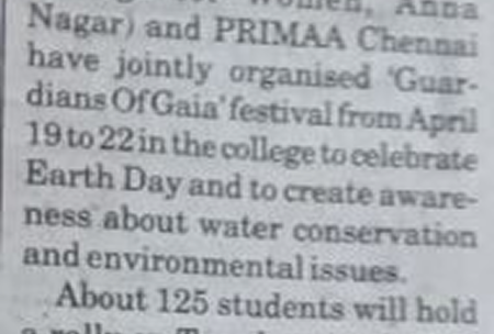 150+ students, the local councilor, dignitaries from Chennai Municipal Corporation, faculty members of Anna Adarsh College for Women, PRIMAA Founders and invited guests joined the rally to raise awareness on local environmental issues. Rally was sponsored by PRIMAA Enterprise.